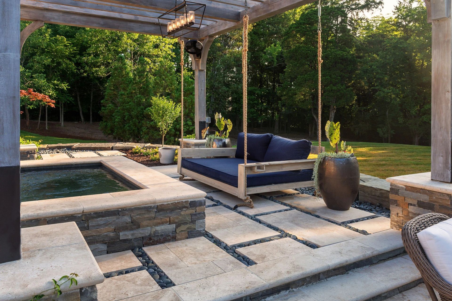 Create a romantic outdoor oasis with cozy seating, ambient lighting and lush greenery. Let Watermark craft your perfect backyard escape for two.